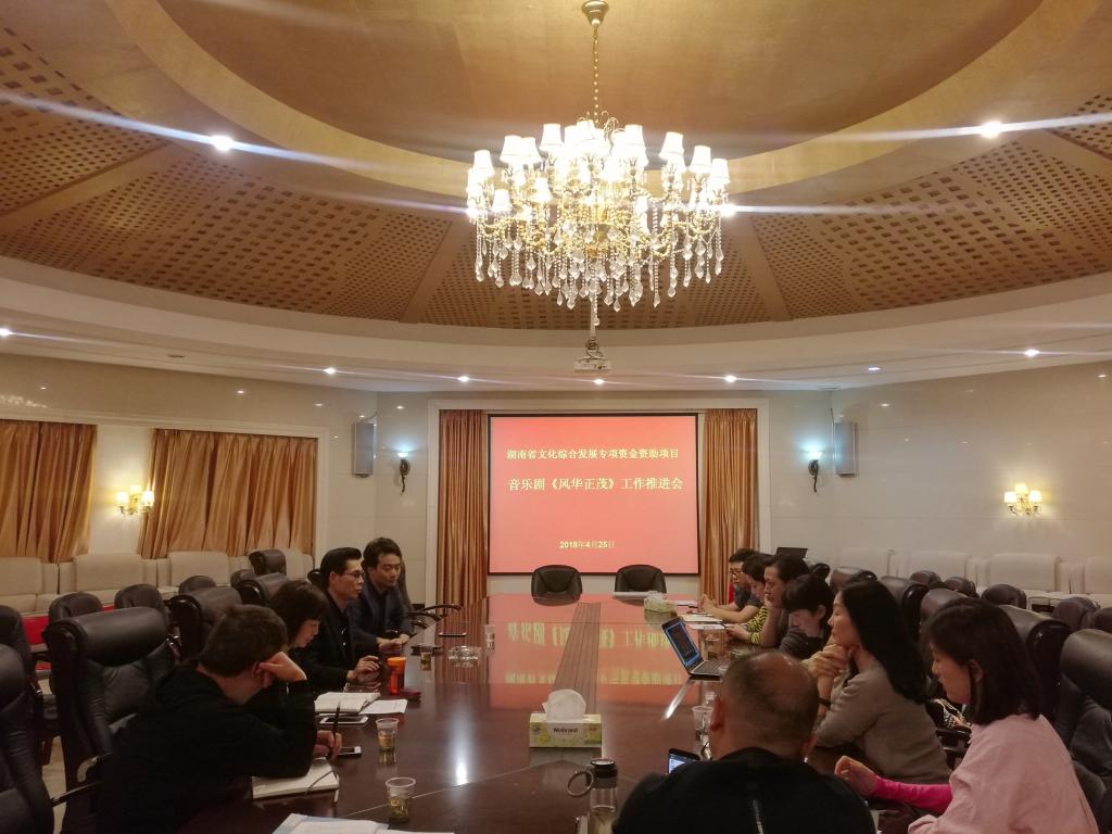 2018年4月25日中午,湖南省文化综合发展专项资金资助项目学院原创音乐剧《风华正茂》工作推进会在南院实验剧院会议室召开。会议由学院副院长杨向东主持,《风华正茂》主创团队和科研处、教务处、实践部、戏剧系相关负责人参加了会议。