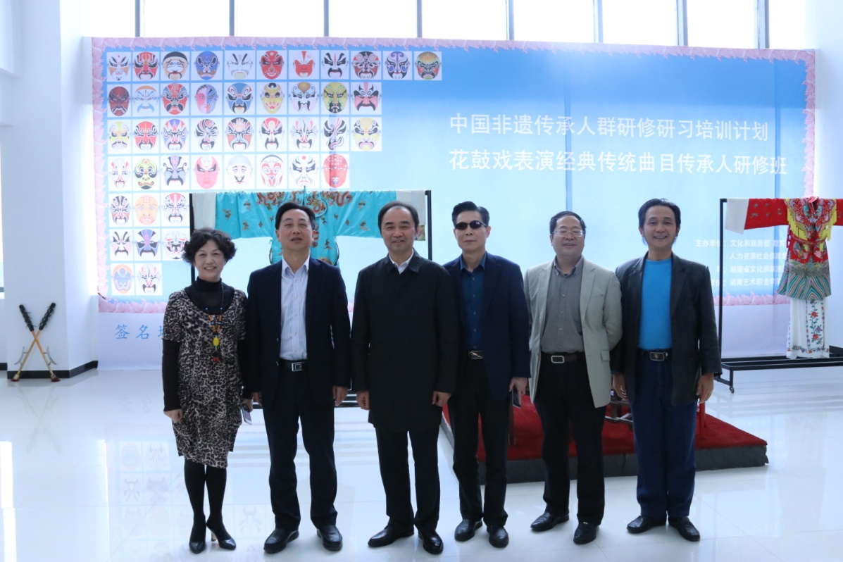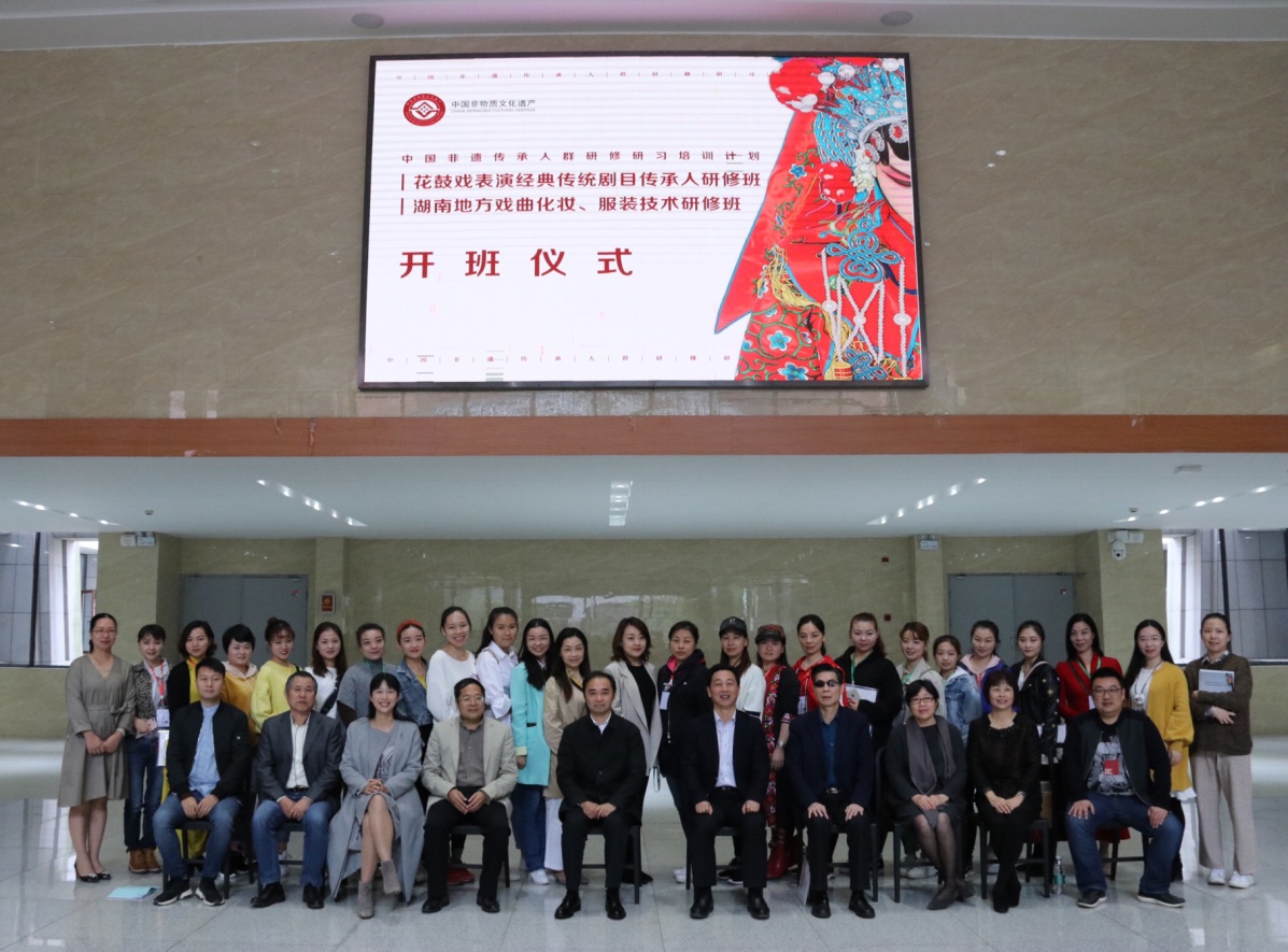 2017年12月,湖南艺术职业学院获批建立“湖南省非物质文化遗产研究培训基地”;2018年4月,学院正式列入“2018年度中国非物质文化遗产传承人群研修研习培训计划”院校名单。“花鼓戏表演经典传统剧目传承人研修班”和“湖南地方戏曲化妆、服装技术研修班”是学院进入研培院校队伍后,依托院戏剧系、美术系教学资源并广泛引进校外师资,精心承办的首期研修班。两个研修班均为期30天,各择优录取了参训学员20名。