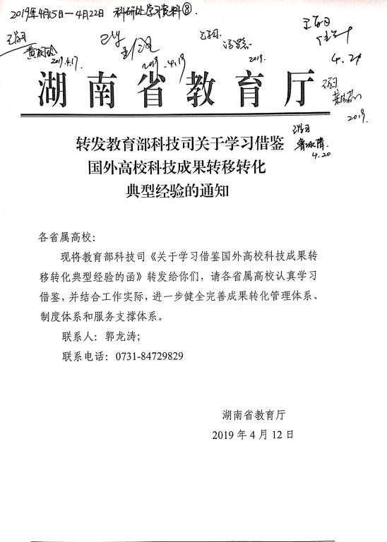 根据科研处相关文件要求,2019年4月22日上午,我处组织开展学习了关于《教育部科技司关于学习借鉴国外高校科技成果转移转化典型经验的函》,科研处处长王含光及科研处全体成员参加了本次学习。