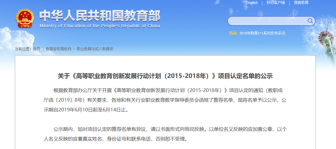 据悉:《高等职业教育创新发展行动计划(2015-2018年)》是教育部为贯彻落实《国务院关于加快发展现代职业教育的决定》和全国人大常委会职业教育法执法检查有关要求,推动高等职业教育创新发展而编制的《行动计划》。目前,教育部公布的《高等职业教育创新发展行动计划(2015-2018年)》项目认定名单中,优质专科高等职业院校有200所,骨干专业有2920个,生产性实训基地有1164个,“双师型”教师培养培训基地有441个,虚拟仿真实训中心有46个,协同创新中心有480个,技能大师工作室有98个。